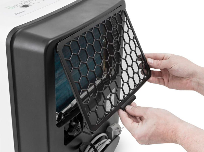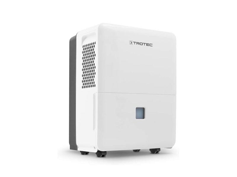 Deshumidificador robusto y compacto con una capacidad máxima de deshumidificación de hasta 30 litros por día.
